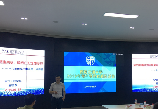 何正友教授在“努力构建和谐师生关系,做一位合格导师”分享报告中,从自己的亲身经历出发,阐述了如何去培养学生以及如何去成为一位优秀导师的问题。他所理解的学生培养目标是:搞懂并能应用基础理论,搞懂并能应用专业知识,具备分析解决问题的能力、表达能力、为人处世的能力。他这样回答了如何构建和谐的师生关系,一是让学生有收获,二是严格和正确引导学生,三是以身作则,培养向上的人生观。最后,他总结道:“问心无愧+能力提升就能构建和谐的师生关系”。