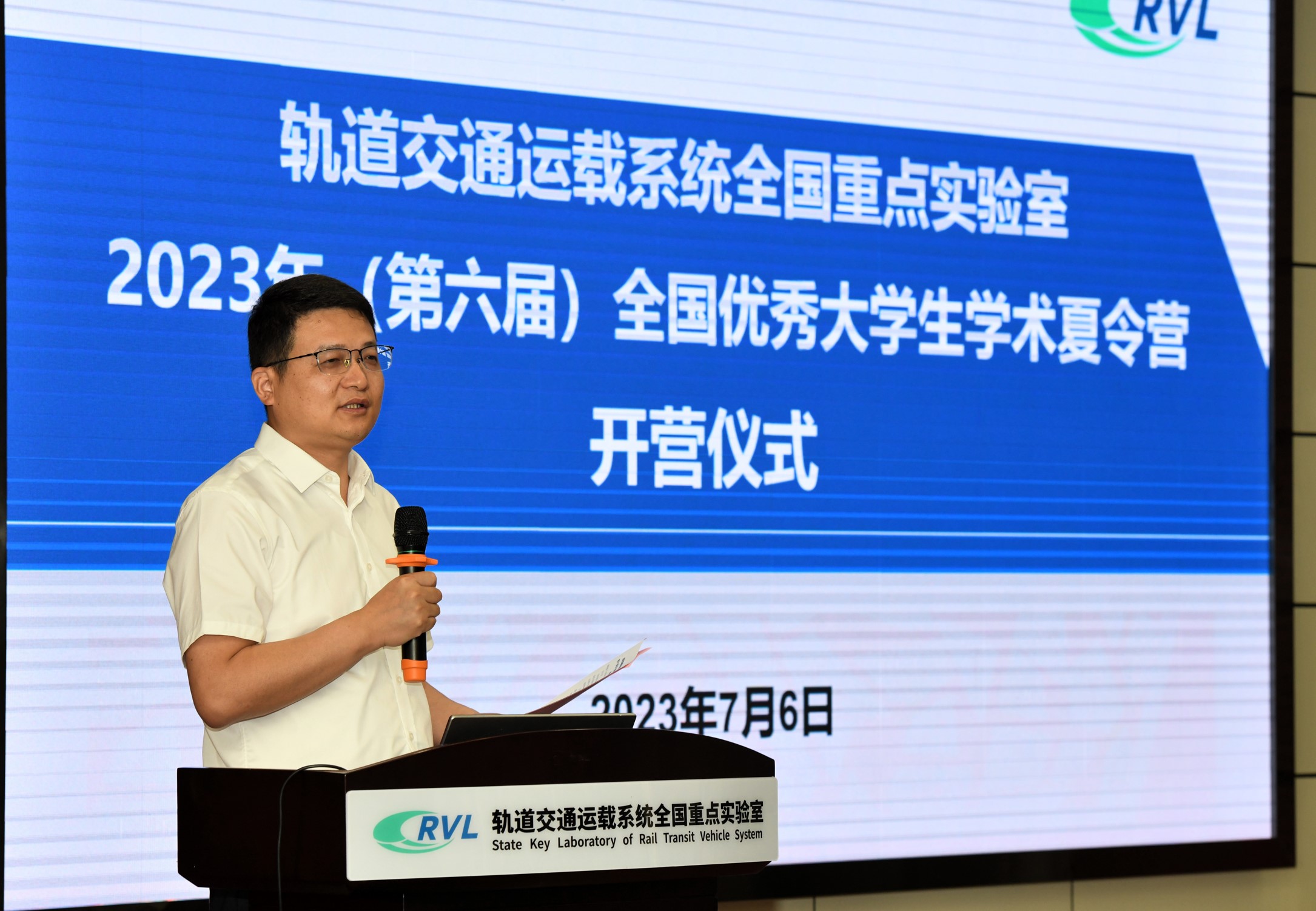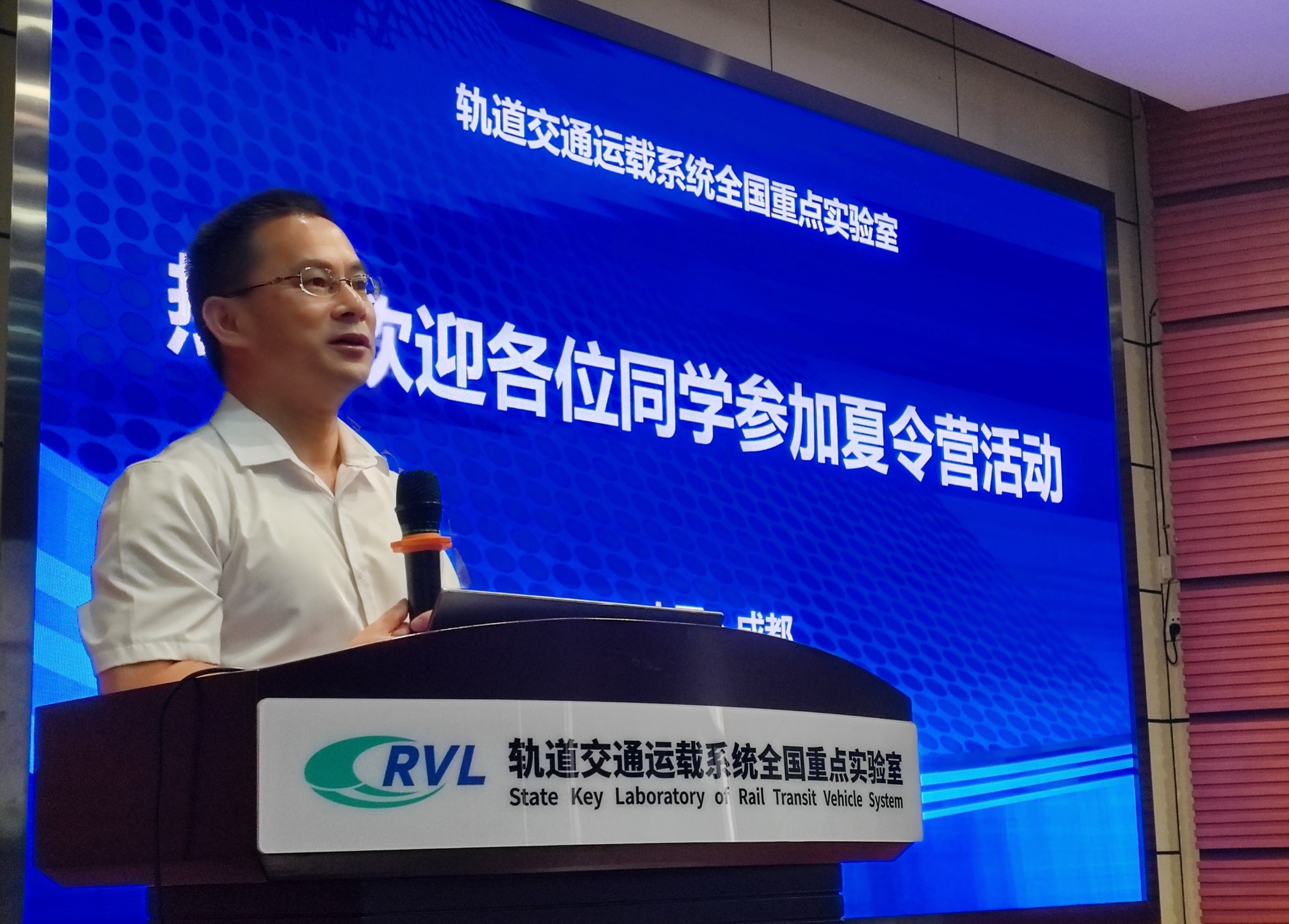 随后,庞烈鑫书记致辞。他代表实验室班子和全体师生对营员们表示热烈欢迎,鼓励同学们要有“强国有我”的使命担当,并利用好夏令营的机会,在领略学术大师风采,感受中国轨道交通非凡成就,体验国家顶尖科研平台的同时,充分地展示自己,通过努力,未来真正成为实验室的一员。