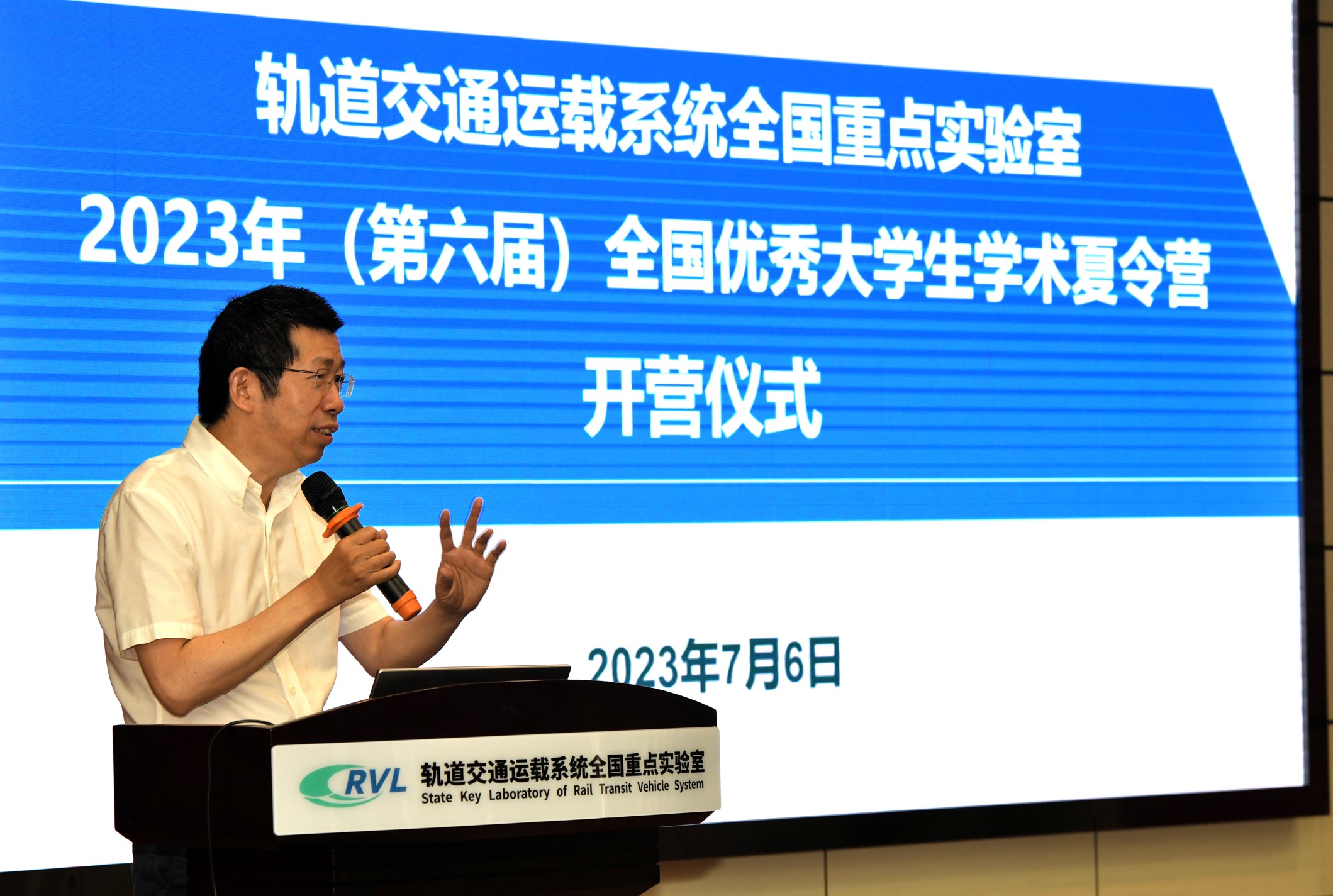仪式伊始,翟婉明院士为营员们送上寄语。他简要回顾了实验室从无到有、从国重走向全重的历程,指出实验室的研究方向几乎覆盖了轨道交通运载系统的方方面面,为学科和行业的发展做出了重要贡献。他鼓励同学们既要树立远大理想,又要坚持脚踏实地,结合专业兴趣,做好进一步提升自我的规划。翟院士勉励全体营员继续努力,并欢迎大家在不远的将来选择实验室,进入大有可为的轨道交通天地。