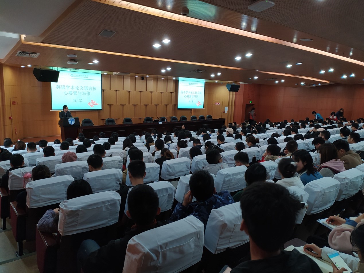 11月29日下午15点,由研究生院主办、生命科学与工程学院承办的创源大讲堂——英语学术论文语言核心要素与写作在我校图书馆二号报告厅顺利举行。研究生院邀请了全国知名科技英语专家、西安理工大学科技英语翻译研究所副所长延宏副教授为同学们带来英语学术论文写作指导与培训。此次讲座以我校图书馆二号报告厅为主会场,并设置了唐山研究生院的远程直播分会场,吸引了近500名研究生参与及学习。讲座由研究生院培养办公室主任华宝玉主持。