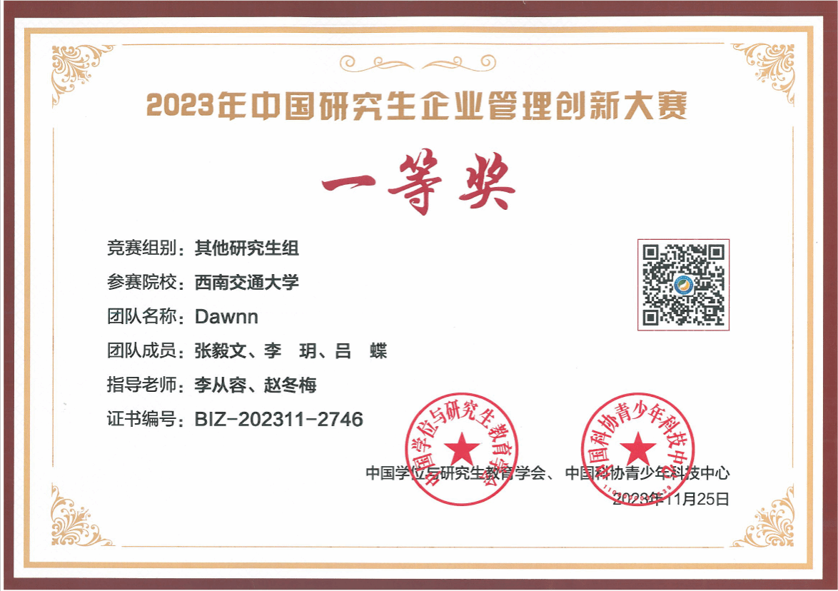 我校研究生代表队在2023年中国研究生企业管理创新大赛中喜获佳绩