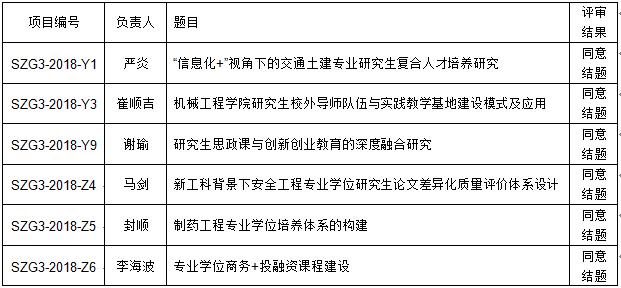 “深化专业学位研究生教育改革第三轮研究(实践)”项目经专家评审,现将结题评审结果公示如下: